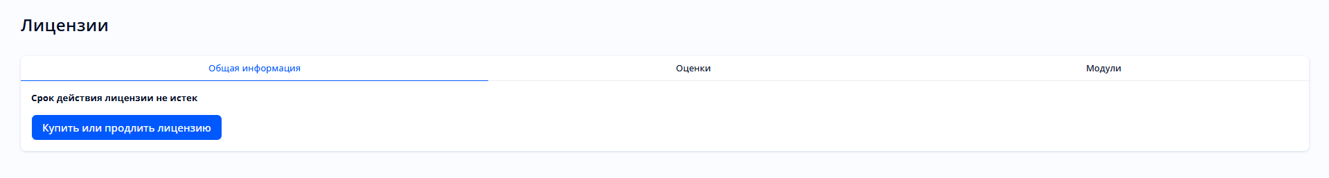 Раздел «Лицензии» предназначен для получения информации о доступных лицензиях.